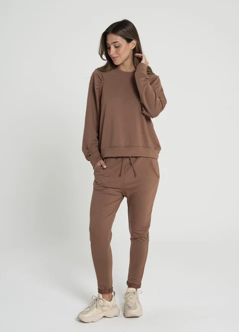 Babucha clasica con dobladillo en ruedo , con cintura elastizada y bolsillos lateras. Tiene cordon al tono