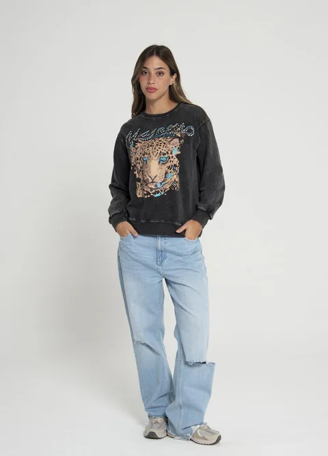 Buzo rustico corte clasico , prelavado. Estampado en delantero con tachas