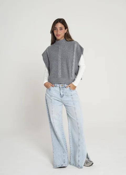 Chaleco con abertura lateral y detalle de brillos en delantero.