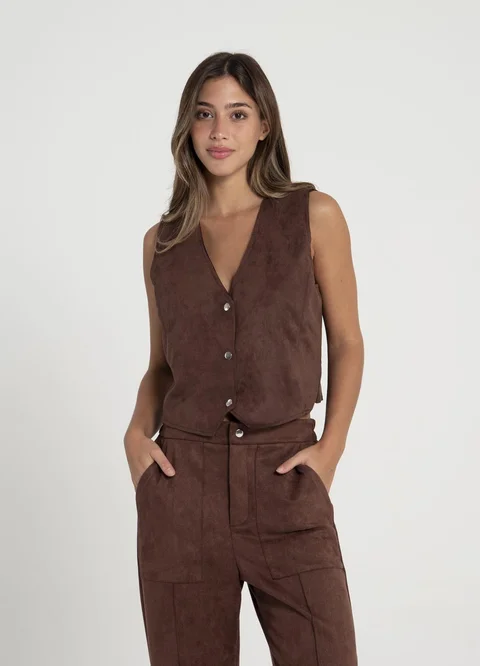 Chaleco gamuza al corte con broches